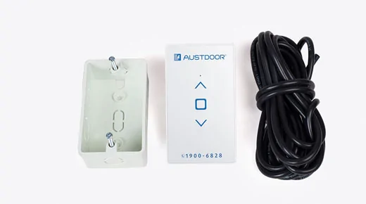 - Nút bấm âm tường có dây giúp vận hành cửa cuốn dễ dàng từ bên trong nhà