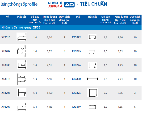Sản phẩm mới Nhôm Xingfa AD